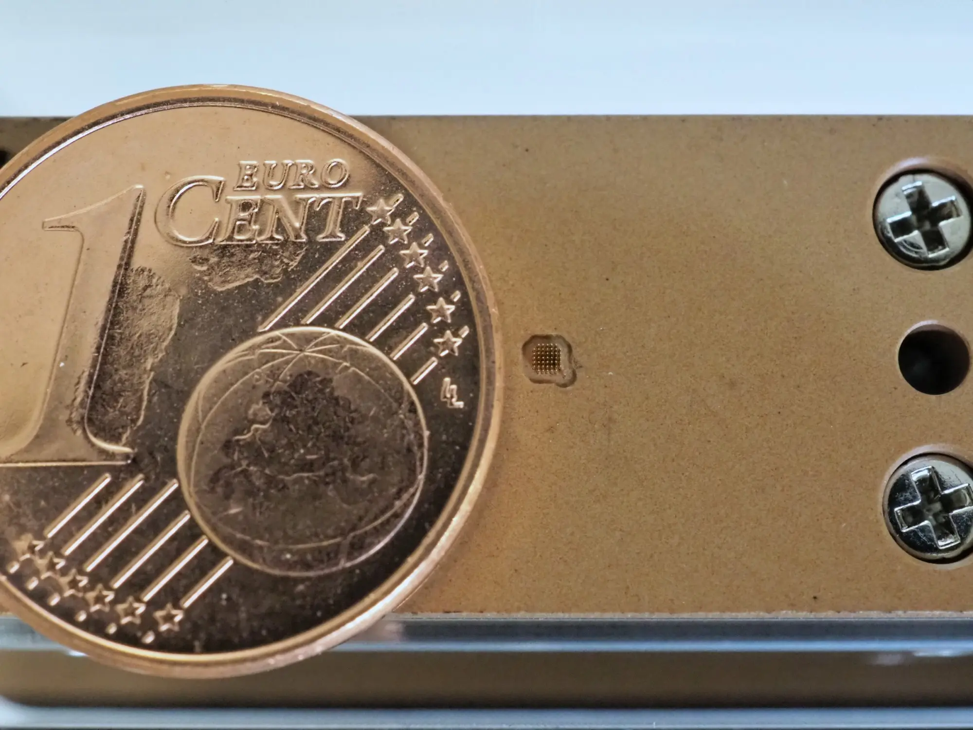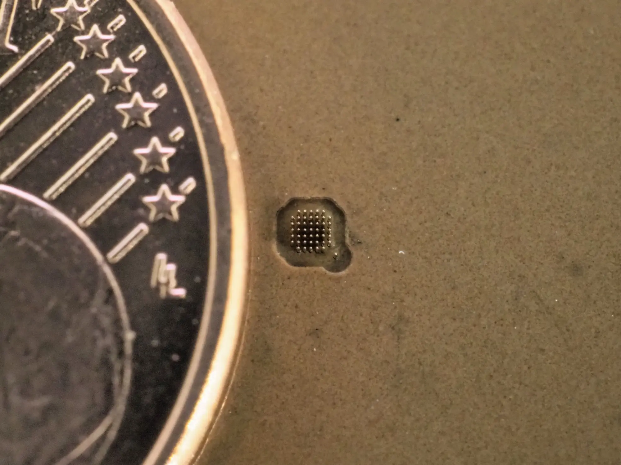 Auf diesem Bild sind 46 Messpins zu sehen, verteilt auf einer Fläche von nur 1 Quadratmillimeter. Erst beim Herauszoomen wird die Dimension wirklich greifbar: